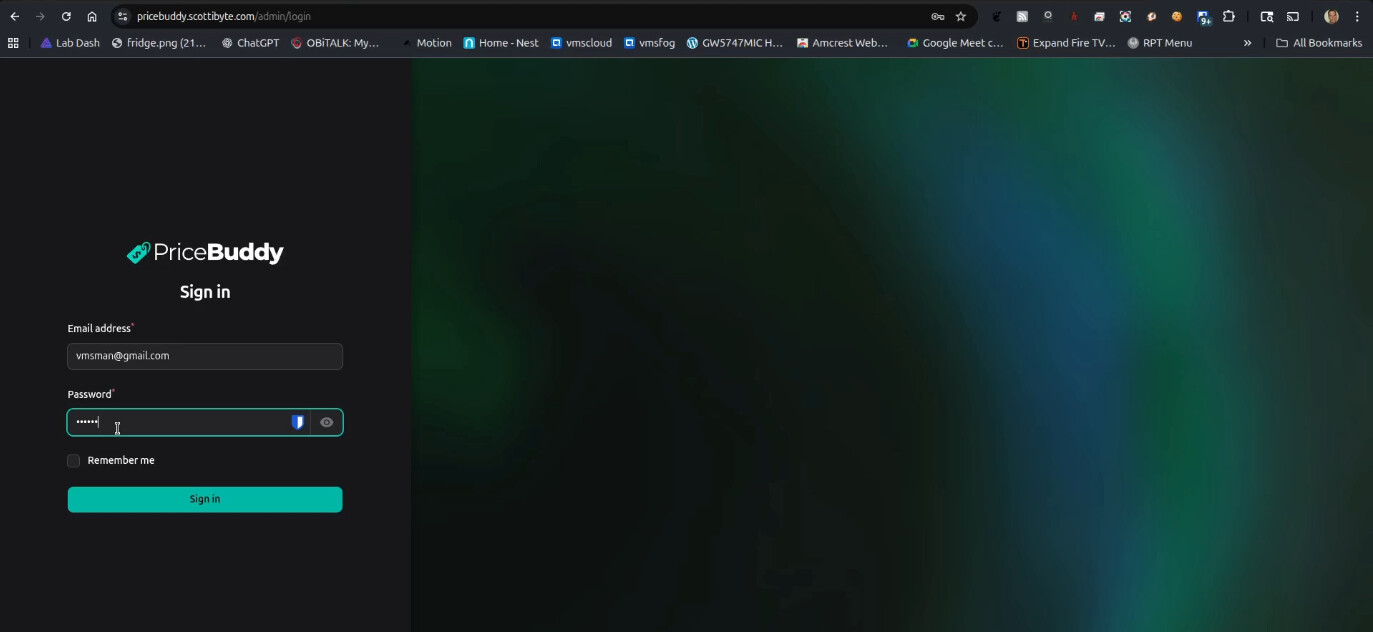 Head on up to your browser and type the subdomain name for your PriceBuddy and you should see a login.