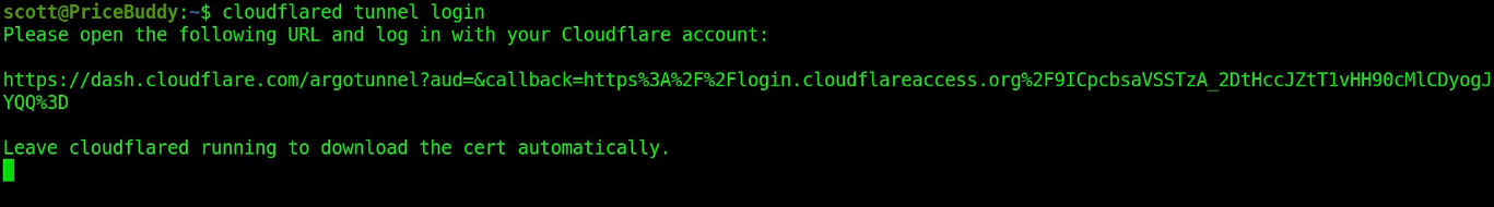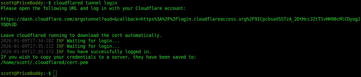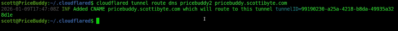 cloudflared tunnel route dns pricebuddy2 pricebuddy.scottibyte.com