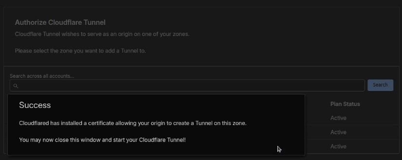 Login to your cloudflared tunnel. Pro Tip: If you are logged into Cloudflare on your default browser, this is simplified.