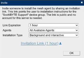 The “Invite” option provides a portable agent for one-time support or under the control of the target user because no agent is installed permanently.