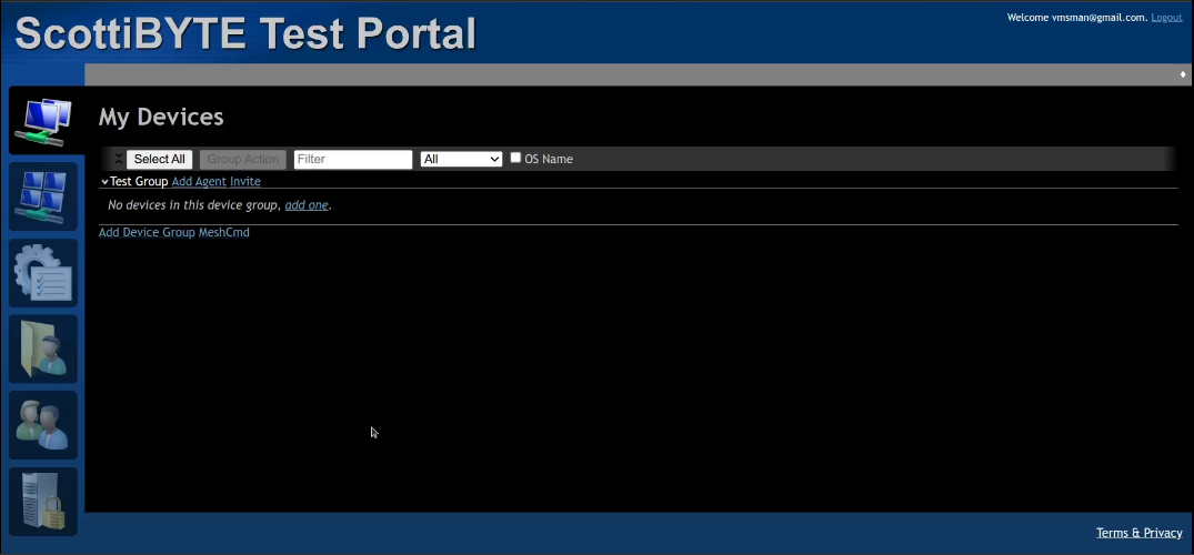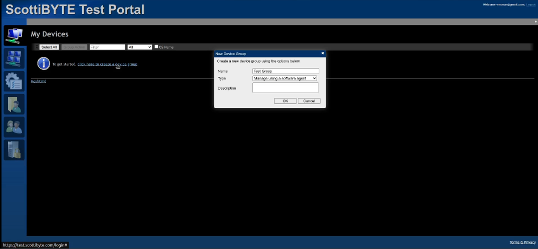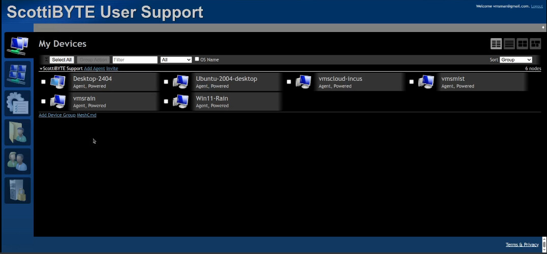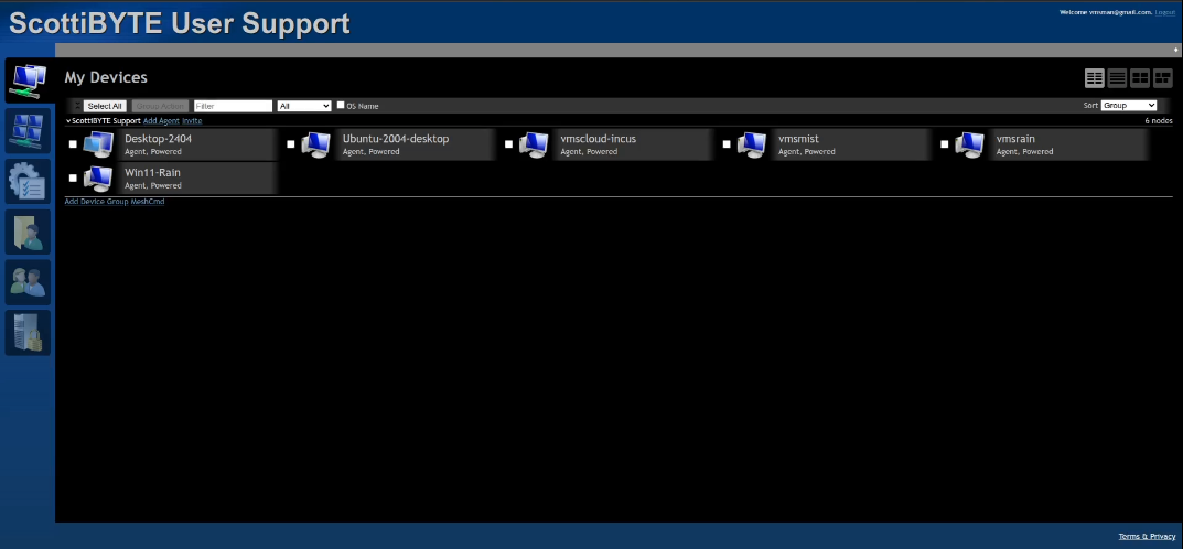 The user interface allows the creation of groups and devices can be managed inside of groups. All of my devices below are in a group named “ScottiBYTE Support”.