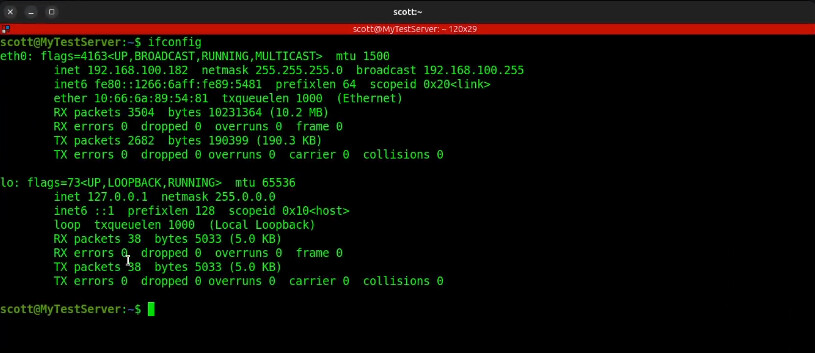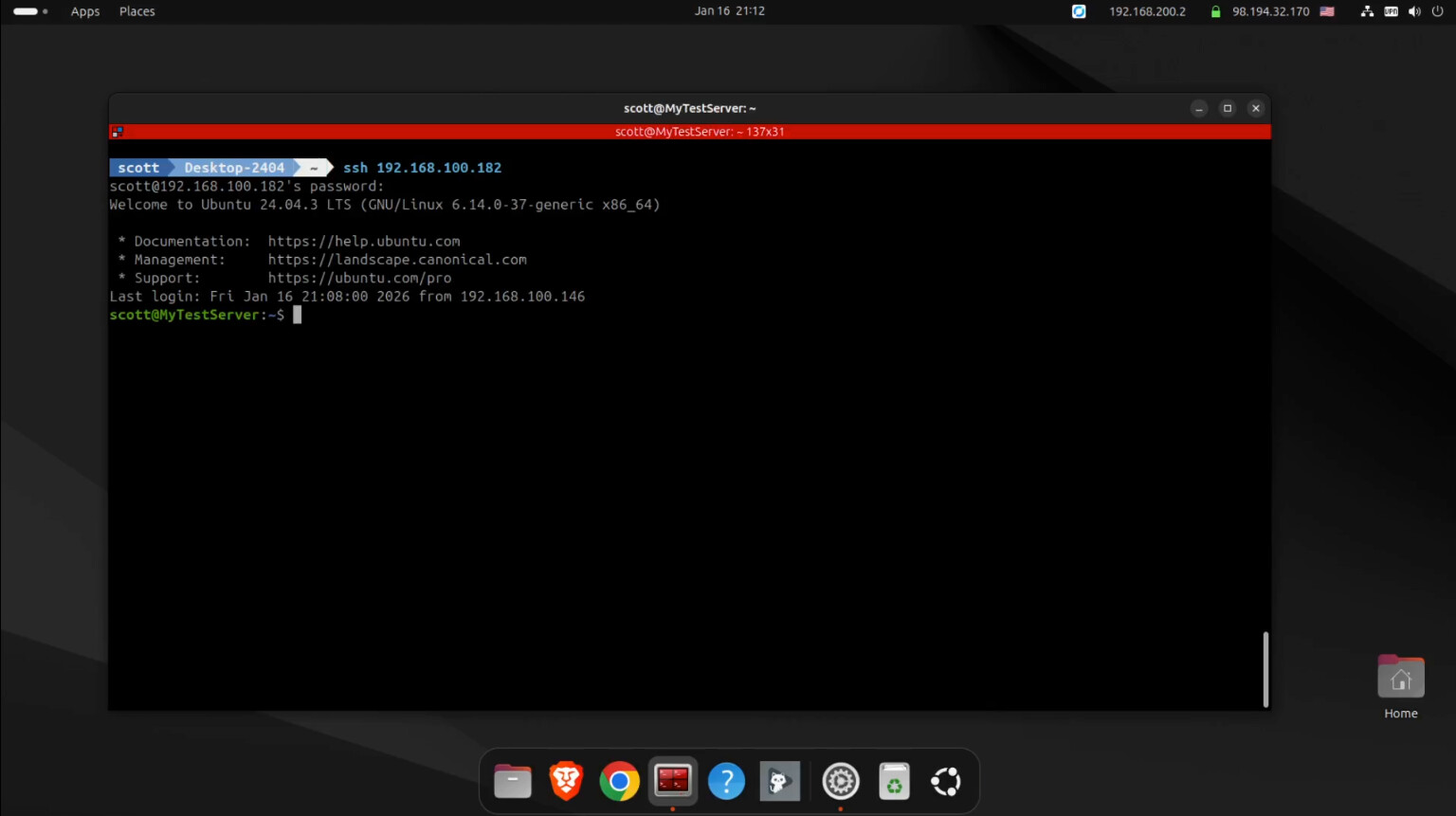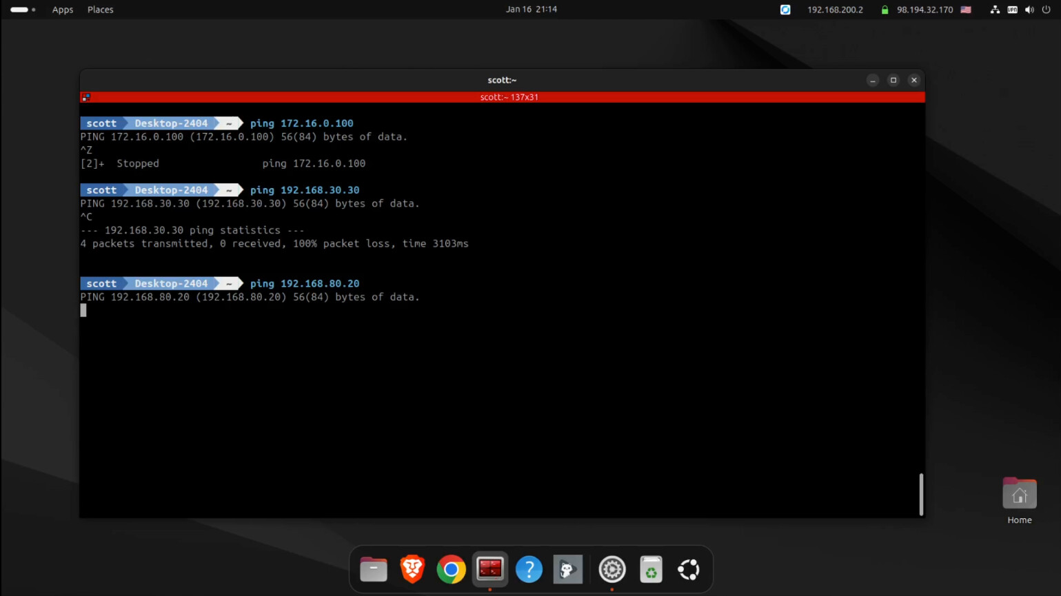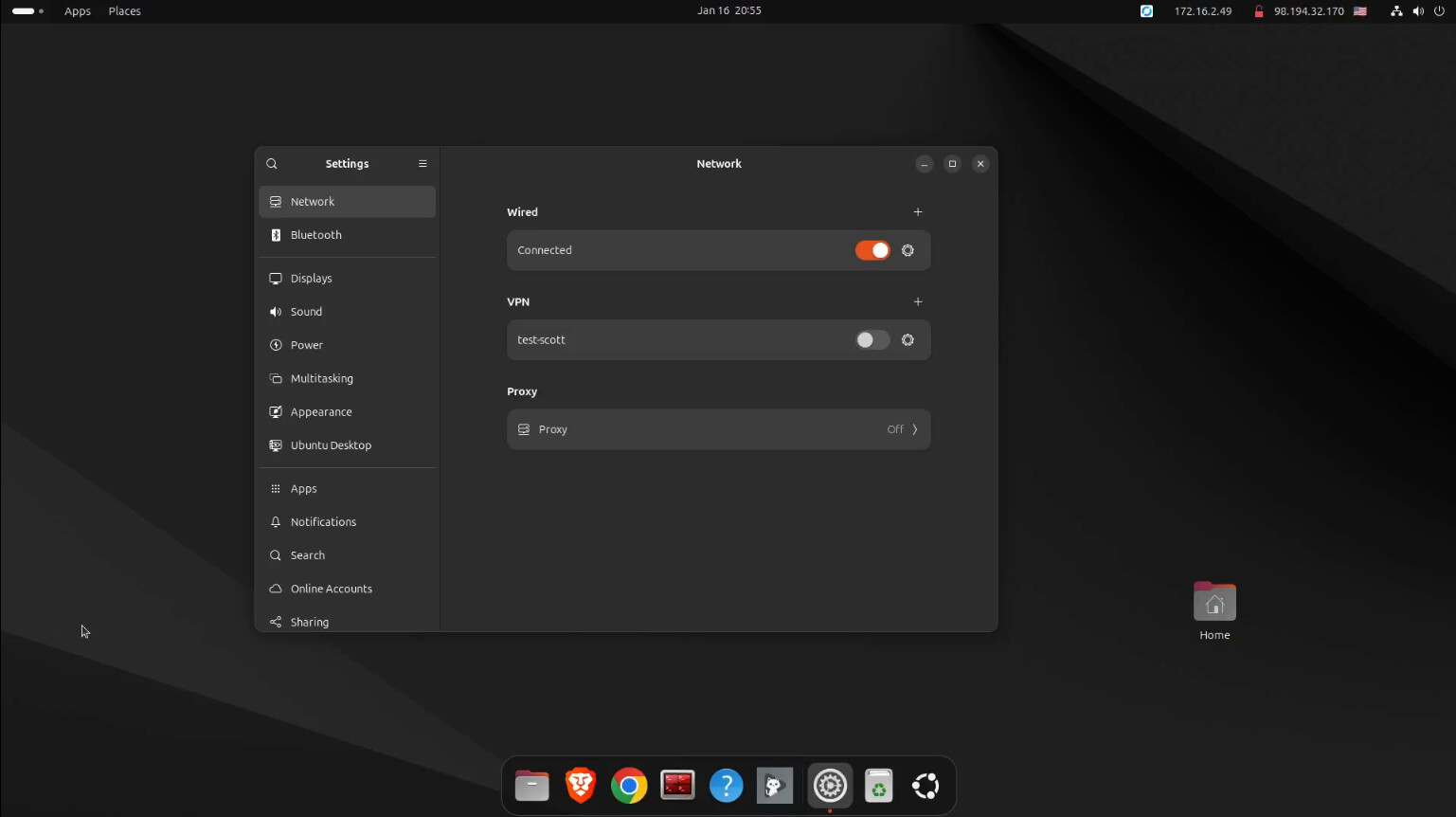 Once I turn the VPN on, the address of the Ubuntu desktop changes to 192.168.200.2 as defined for the scott user.