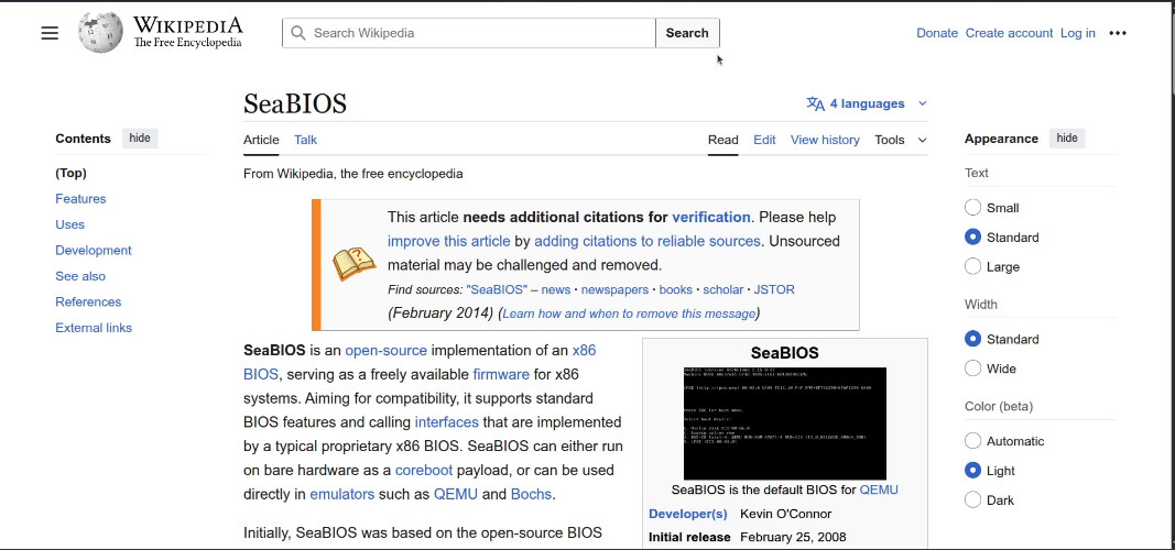 We are going to Boot Tails OS with the Legacy x86 ROM BIOS and Incus provides legacy ROM BIOS boot support via the Open Source SeaBIOS.