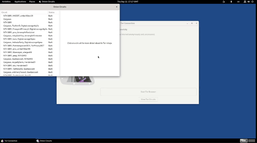 Once you are connected, you can browse your Tor Circuits as a fun gee wiz.
