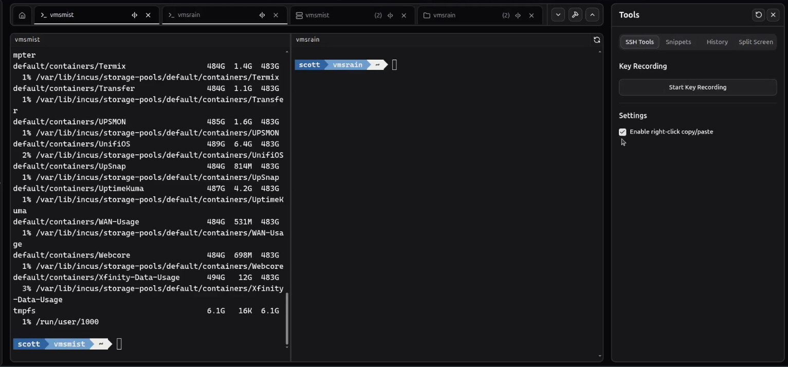 A key usage note for Termix is to head over to the Tools menu and into the “SSH Tools” tab. There you will want to put a check mark in the “Enable right-click copy/paste” setting. This allows you to copy selected text into your cut buffer by pressing your right mouse button. The paste operation is the standard Shift CTRL V. The reason for this accommodation is because the standard Shift CTRL C command normally opens the web browser development console and cannot be easily remapped.